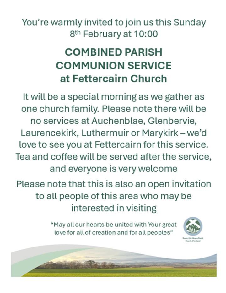 This unified mission plan for the new parish, encompassing the former parishes of West Mearns, Laurencekirk, and Aberluthnott, reflects a shared commitment to serve God by serving our communities.